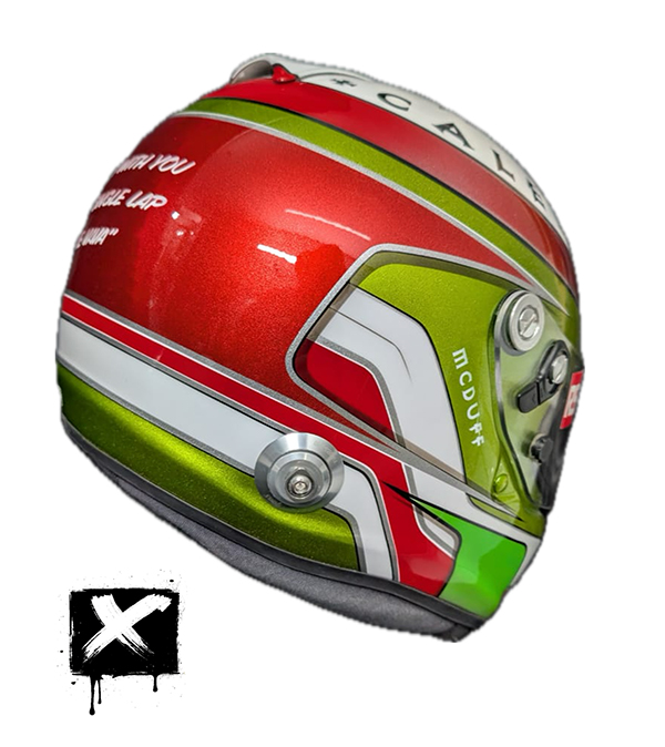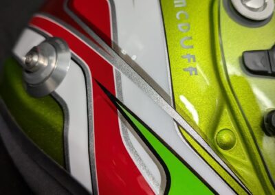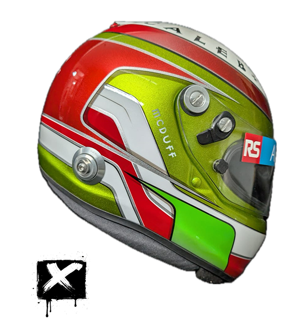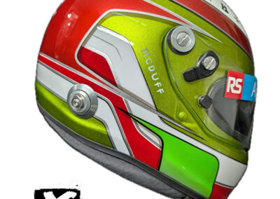 When it comes to motorsports two wheels is my flavour of choice. When it comes to painting helmets I do like the car helmets best. So when Ian McDuff got in contact to ask for some assistance producing a brand new design for Caleb, I jumped at the chance. Ian was the perfect client, he left me plenty of room for input and creative freedom.