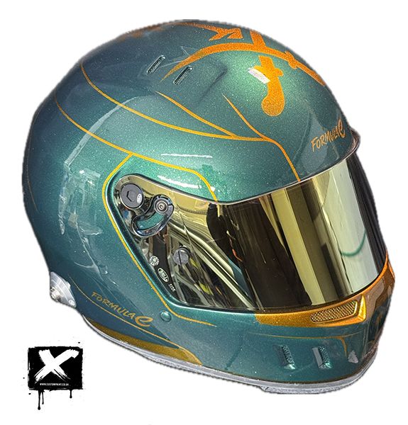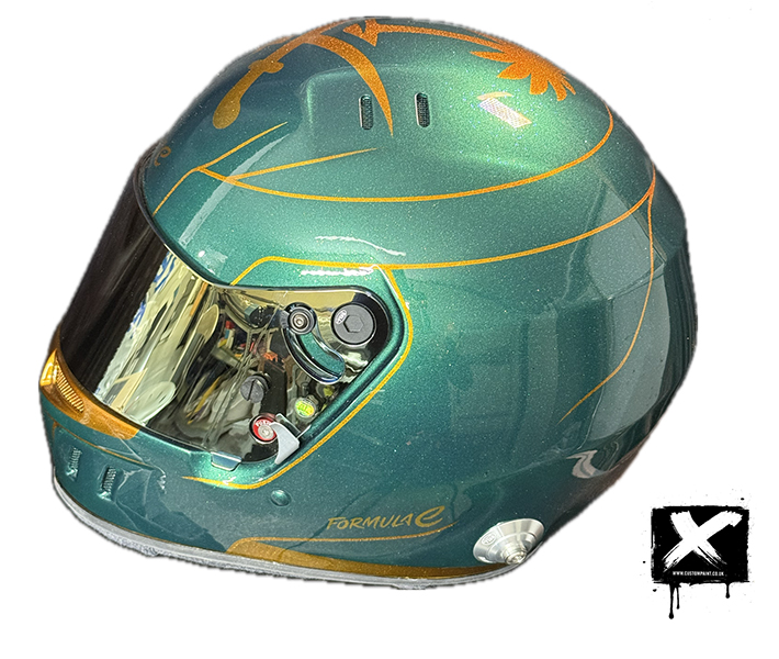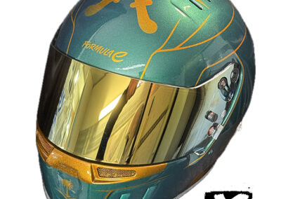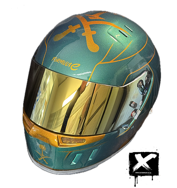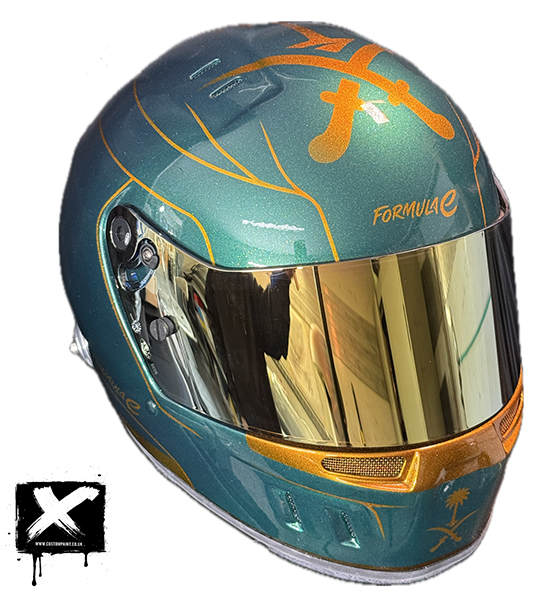 For the 2026 Jeddah E-Prix in Saudi Arabia, I was commissioned to produce a VVIP corporate gift helmet worthy of the occasion. Designed for presentation rather than competition, this premium one-off piece was executed from artwork supplied by Formula E and finished to the highest professional standard.