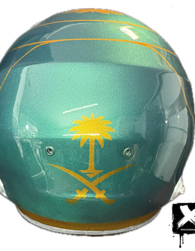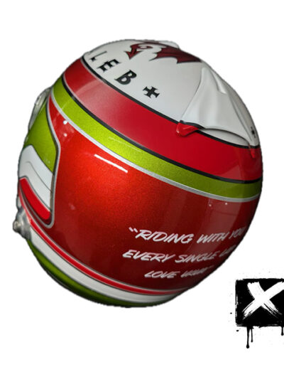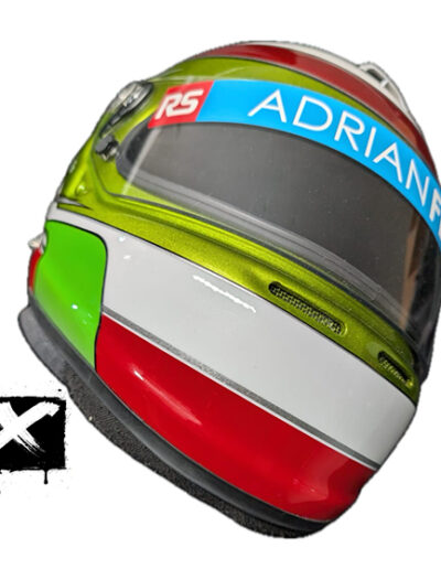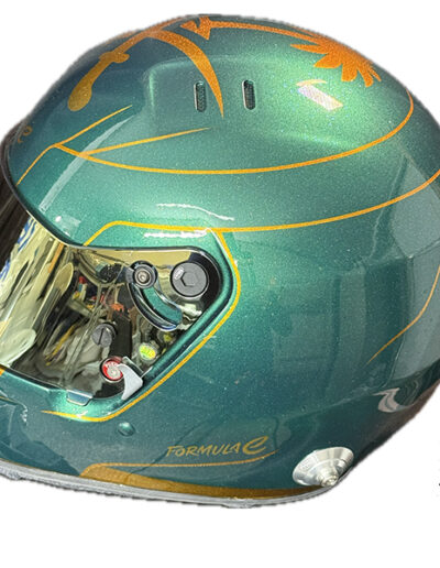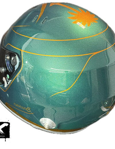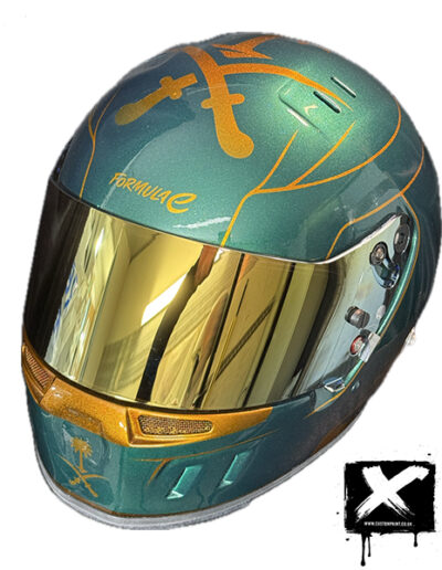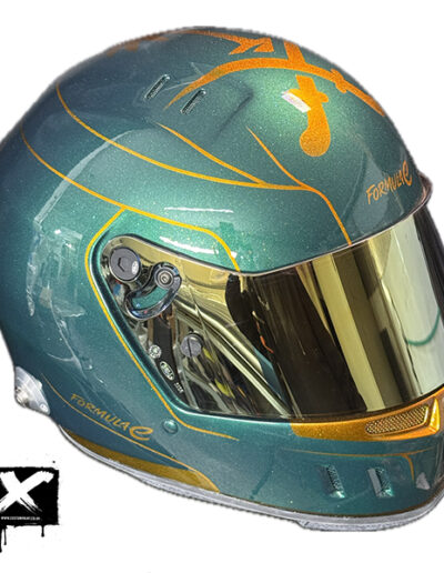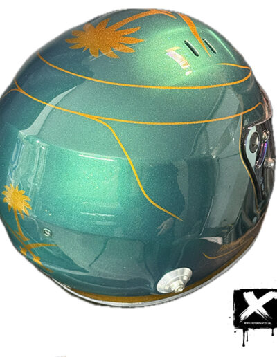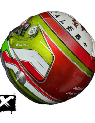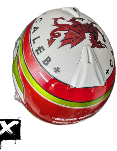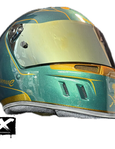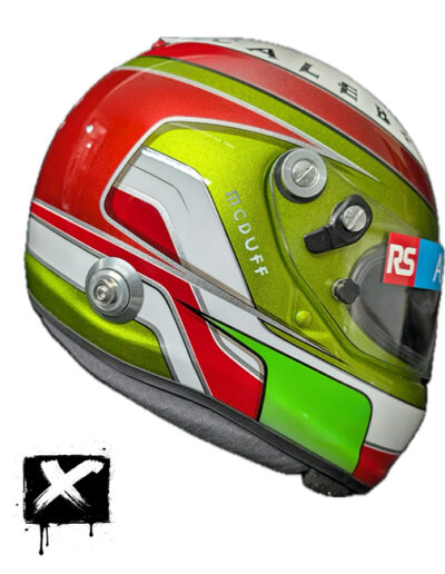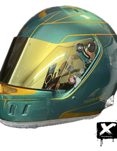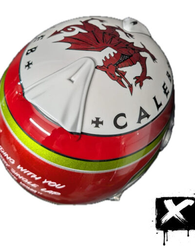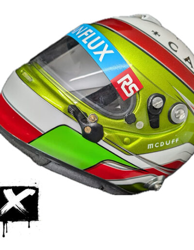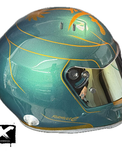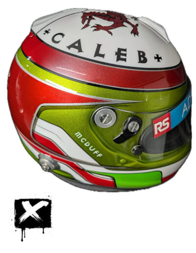 pictured is Noah Cosby's crash helmet painted by X-Paint Noah races for team Britcar