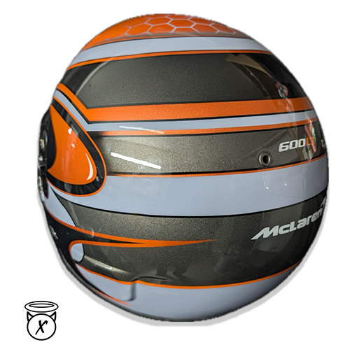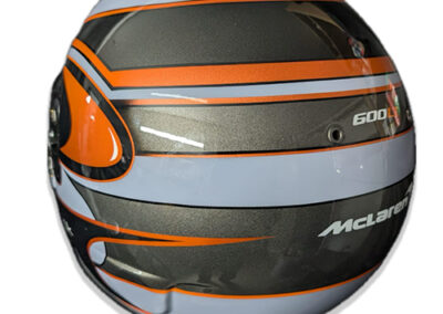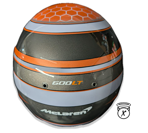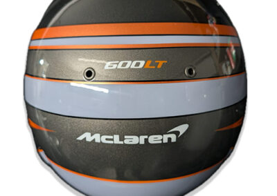 It was an honour to be asked to match a Mclaren 600lt with a custom painted helmet. Not only have Mclaren had a great F1 season but they are also known for making some great cars with exceptional attention to detail and a flawless finish, we knew the helmet had to be good.