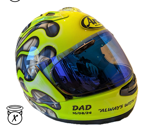 It also means that the helmets last. I still have a race helmet from the early 2000’s that just needs a polish to shine despite being thrown into the back of the garage. But don’t take my word for it, check out some of our racers who are into the second season of racing with a helmet that still looks brand new. You too can get your helmet custom painted at X-Paint in Sulby on the Isle of Man. We can help you create a design that’s uniquely yours. Our team is dedicated to delivering high-quality, hand-finished custom paint jobs that meet your specific needs and preferences.