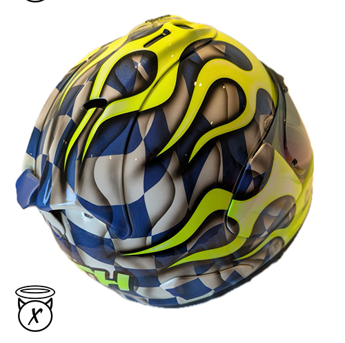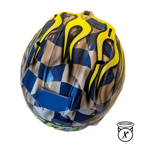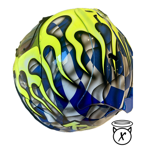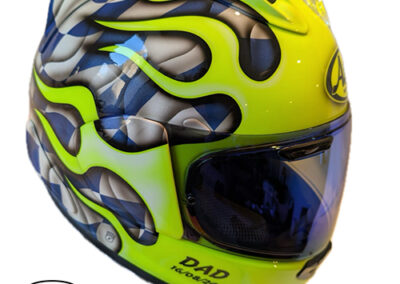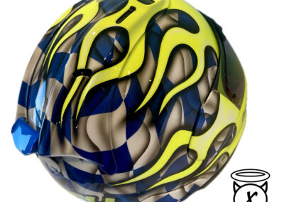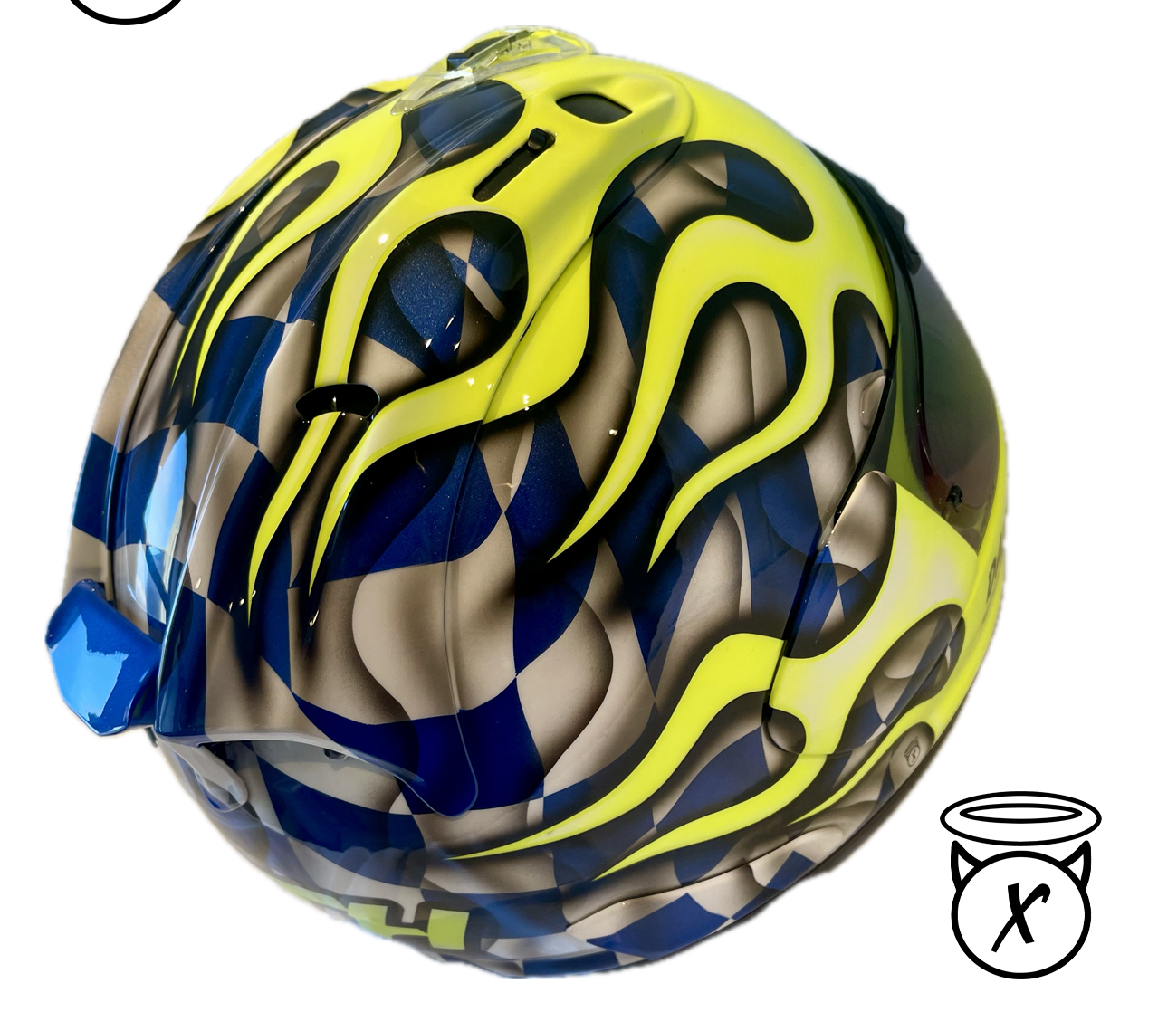 I am starting where I left off over twenty years ago, using the same processes and working to the same quality as the old days. Everything is airbrushed on my art helmets and show paint, of course we can do race paint if you need something super cost effective and turned around quickly, but the majority of my work is proper custom paint.