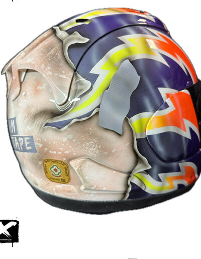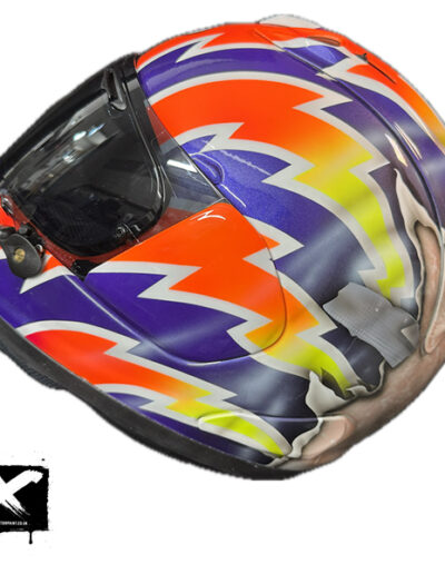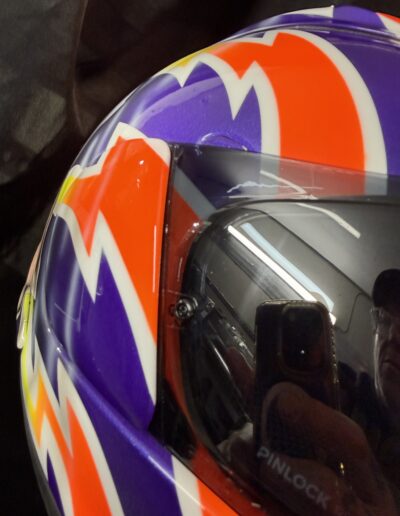 a picture of an airbrushed mural of a spitfire plane on the back of a crash helmet